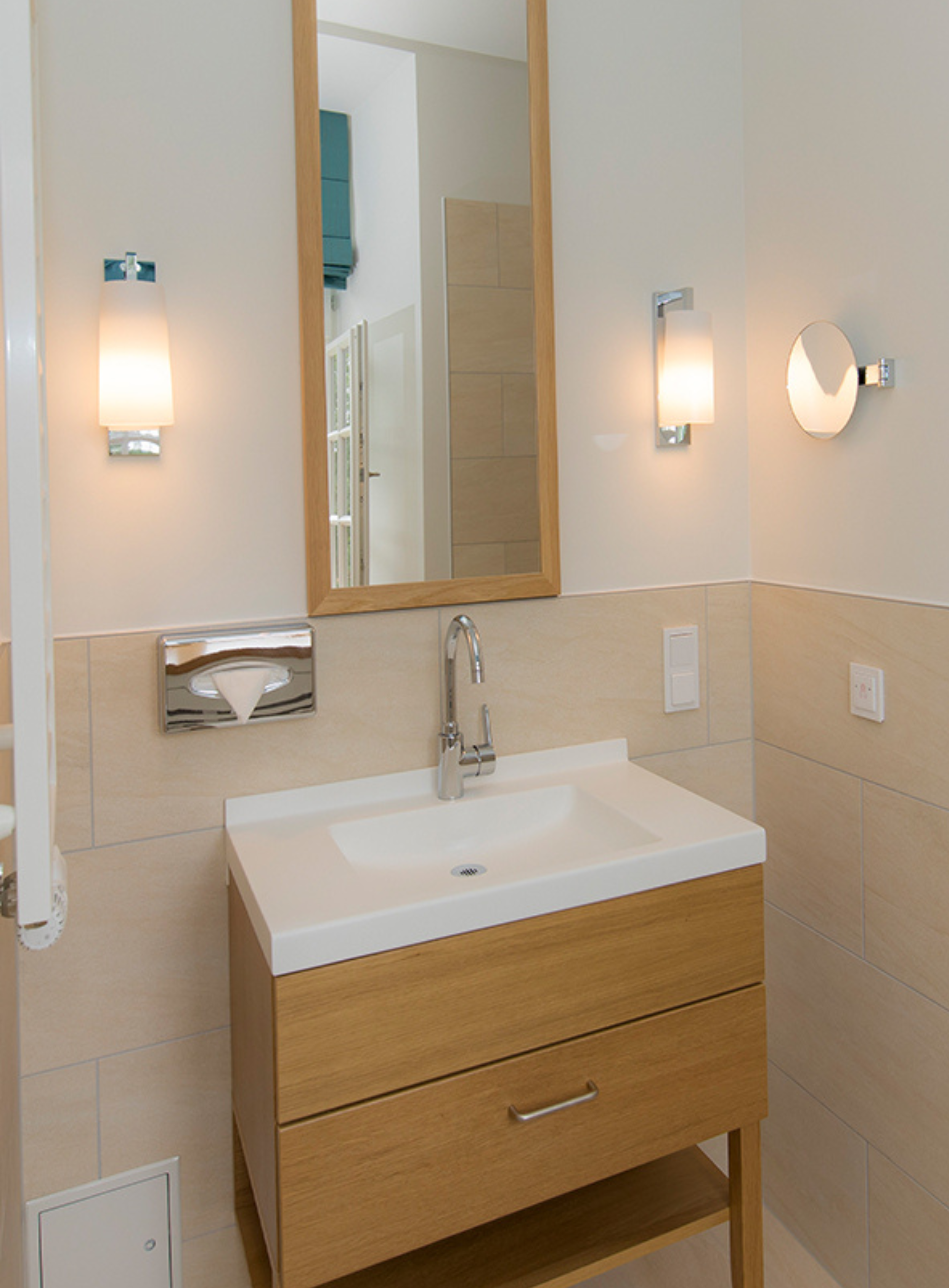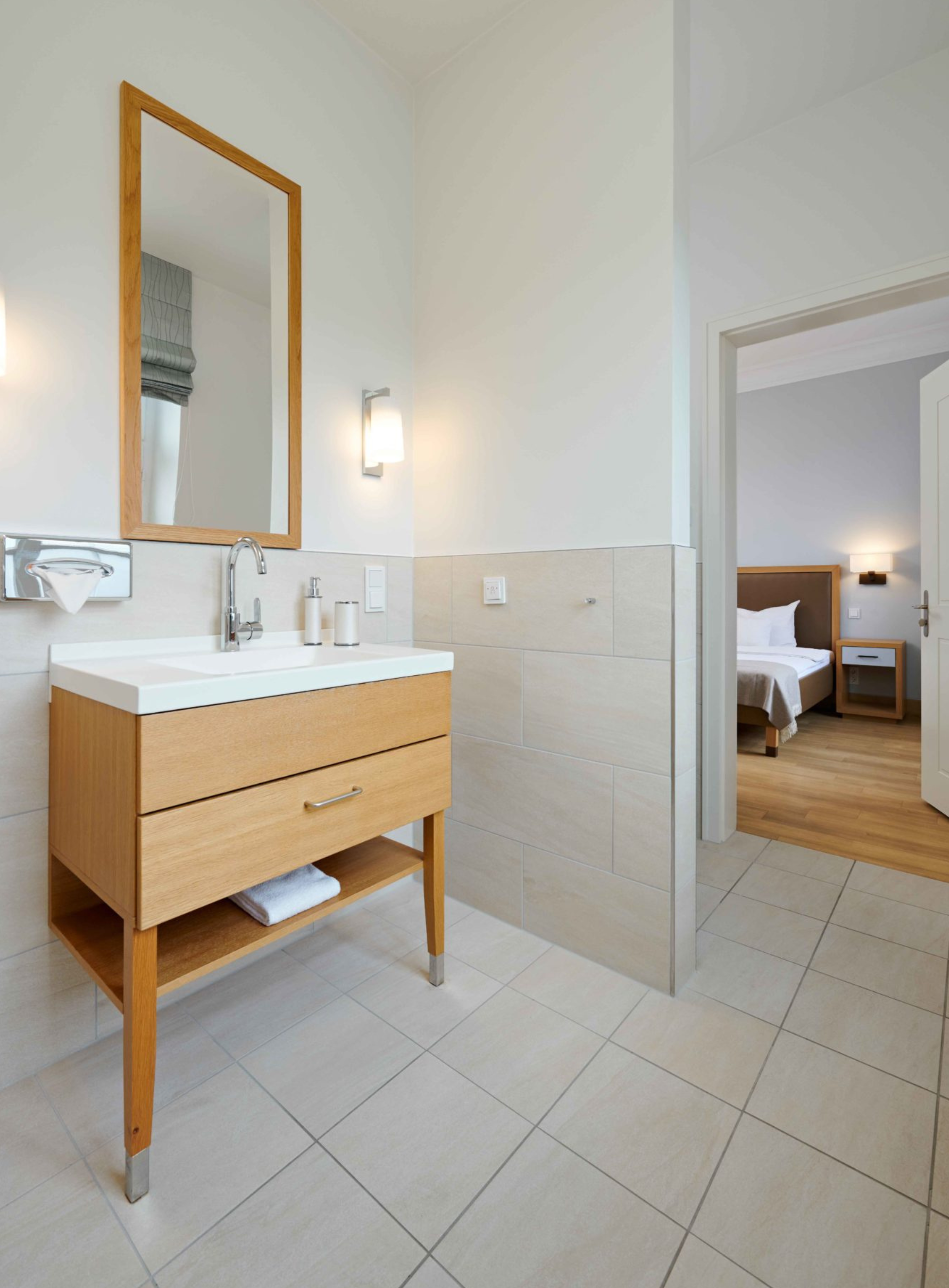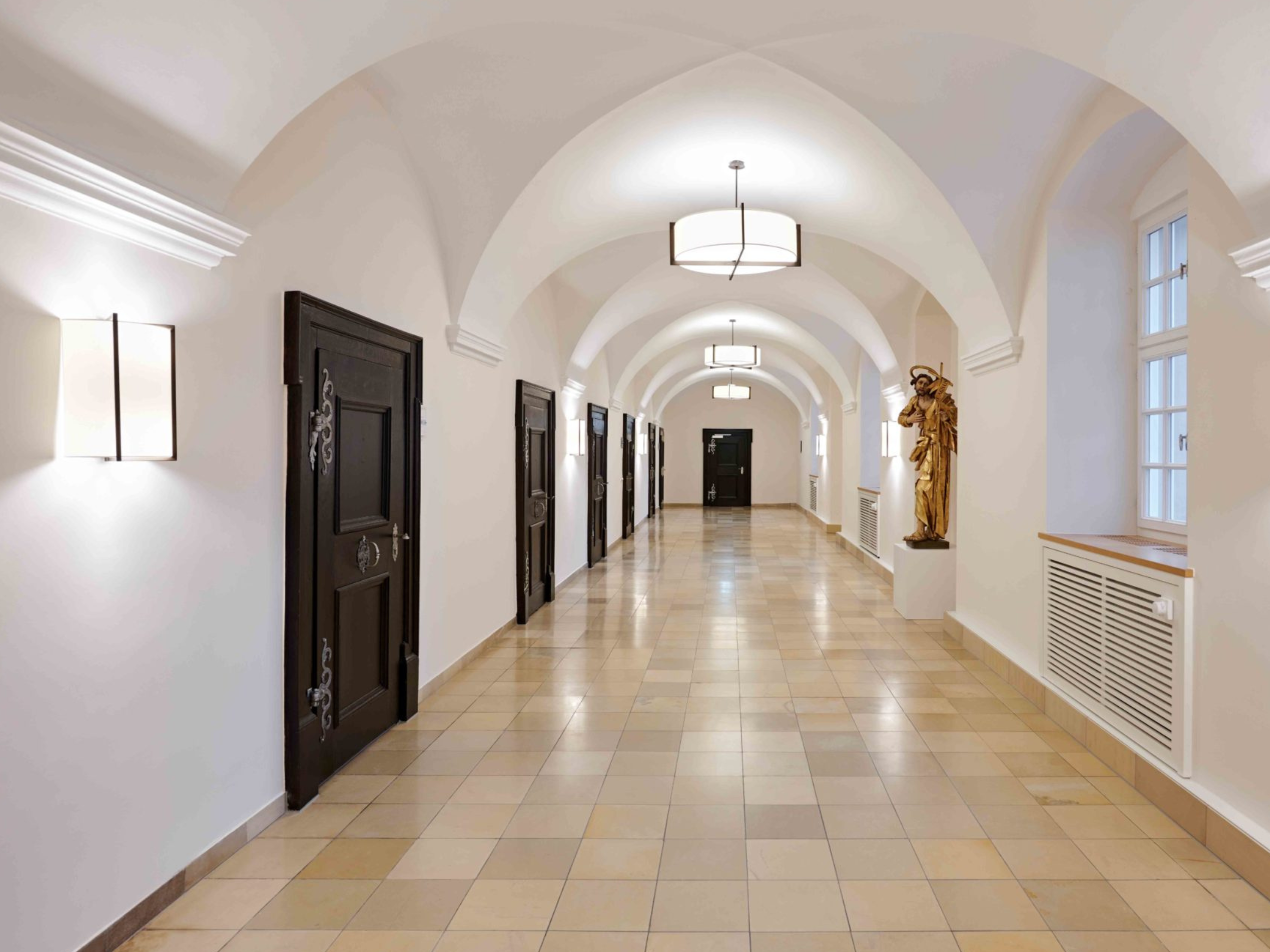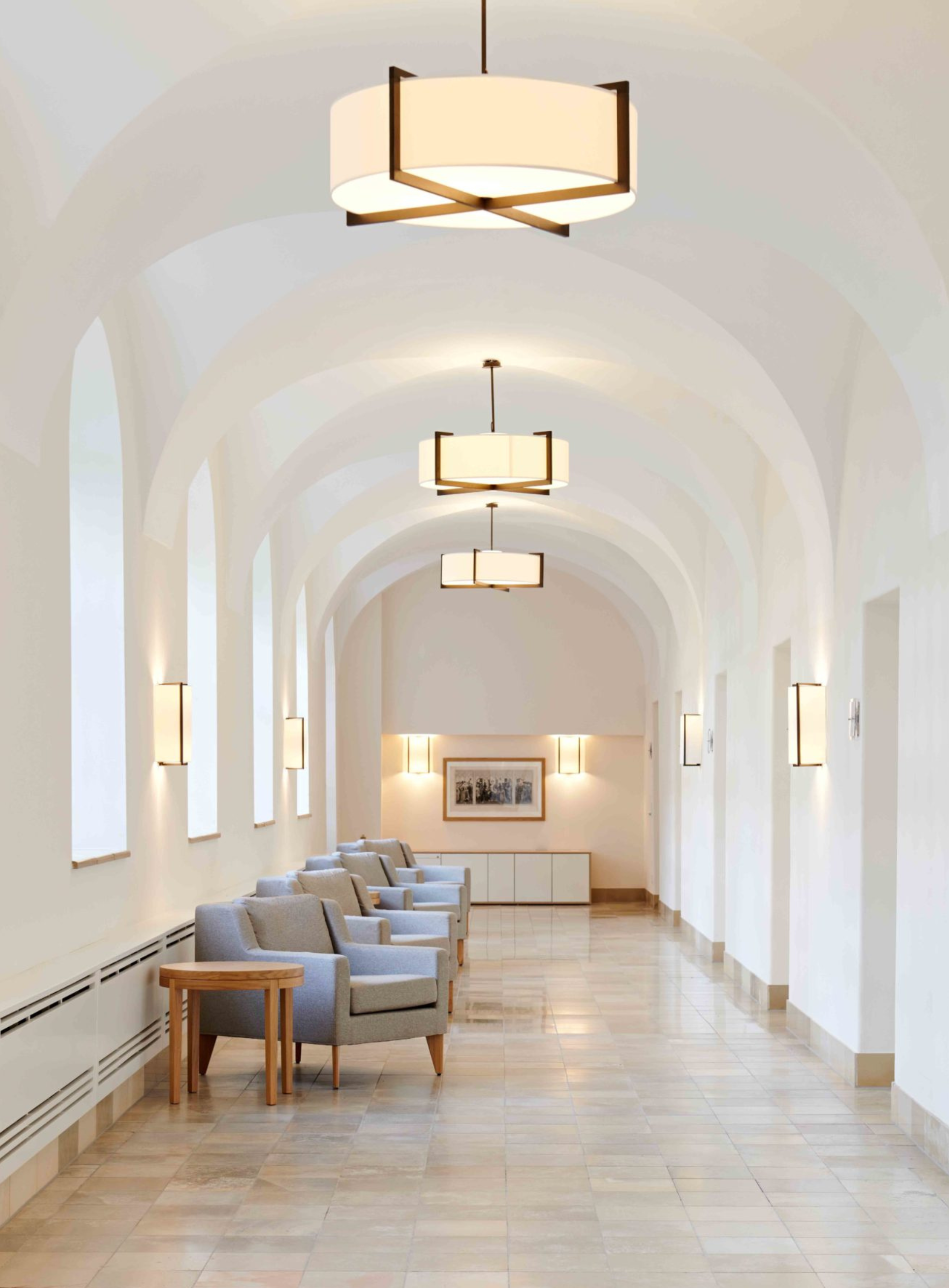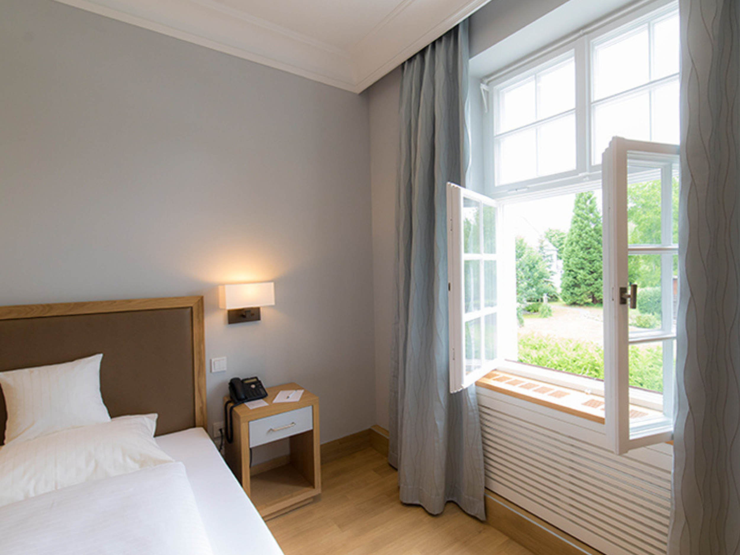 Besonders wichtig war uns, die historische Substanz der Klosterräume zu bewahren und diese mit den modernen Ansprüchen einer Klinik zu kombinieren. Für die Patientenzimmer entwickelten wir ein gesundheitsförderliches Farbkonzept, das in Kombination mit warmen Materialien und individuell entworfenen Möbeln für Wohlbefinden bei den Patienten während des Aufenthalts sorgt.